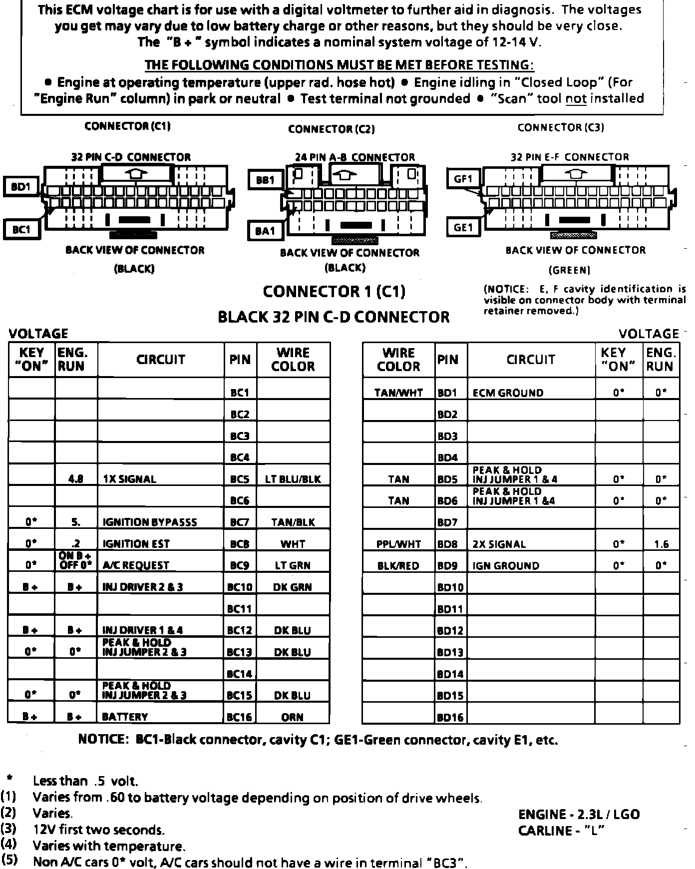 ECM PINOUT/Terminal I.D. Chart "L" Carline (1 Of 2):