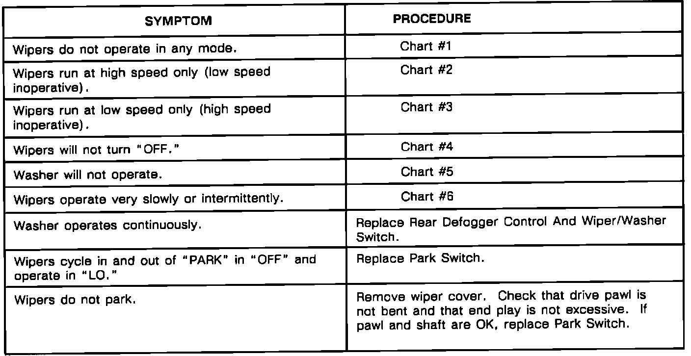 Wiper System Symptom Diagnosis Chart: