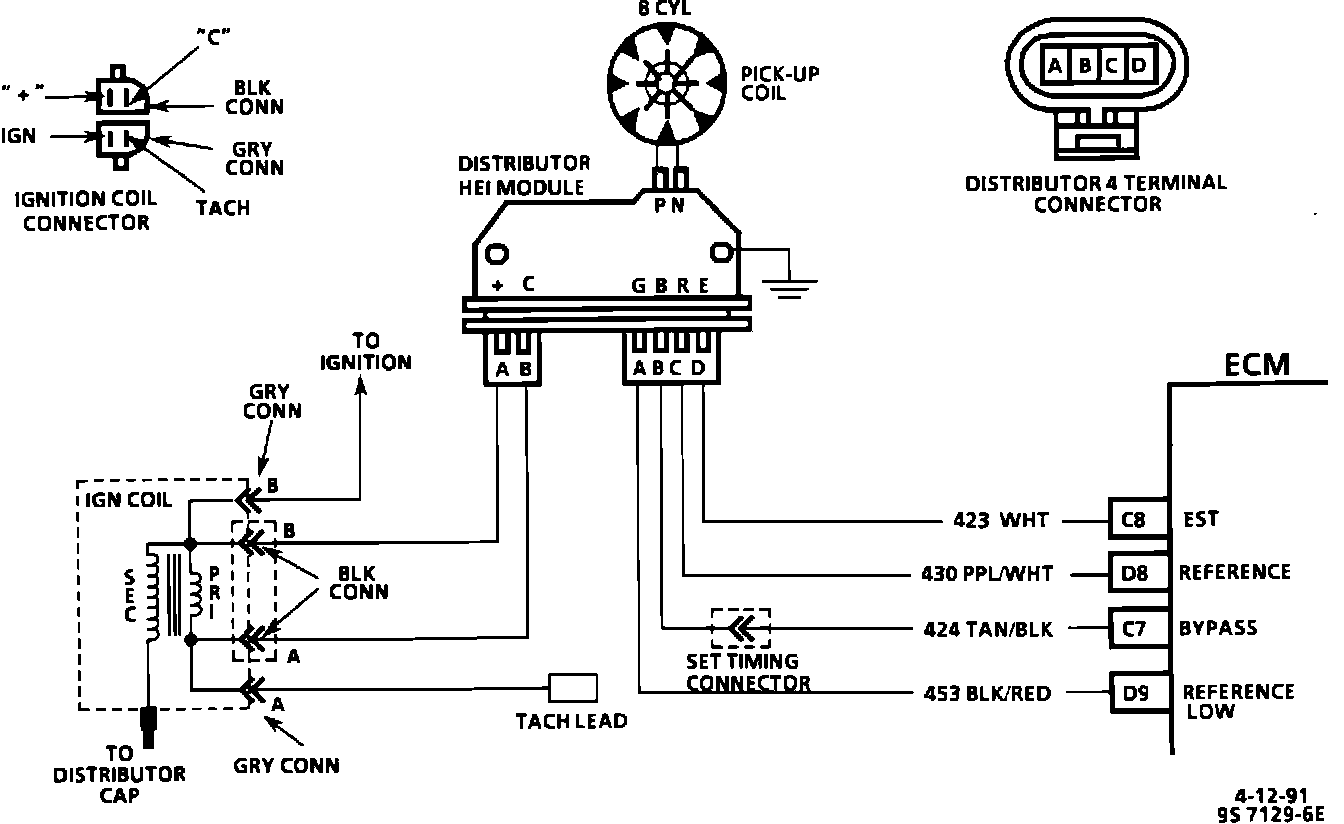 When the system is running on the ignition module, that is, no voltage on the bypass line, the ignition module grounds the Electronic Spark Timing (EST) signal. The Electronic Control Module (ECM) expects to see no voltage on the EST Line during this condition. If it sees a voltage, it sets Code 42 and will not go into the EST mode. When the rpm for EST is reached (about 400 rpm), and by-pass voltage applied, the EST should no longer be grounded in the ignition module so the EST voltage should be varying. If the bypass line is open or grounded, the ignition module will not switch to EST mode so the EST voltage will be low and Code 42 will be set. If the EST line is grounded, the ignition module will switch to EST, but because the line is grounded, there will be no EST signal and a Code 42 will be set.