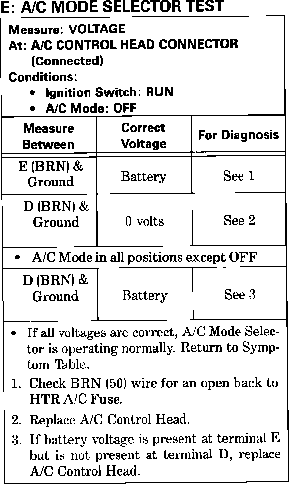 A/C Mode Selector Switch:
