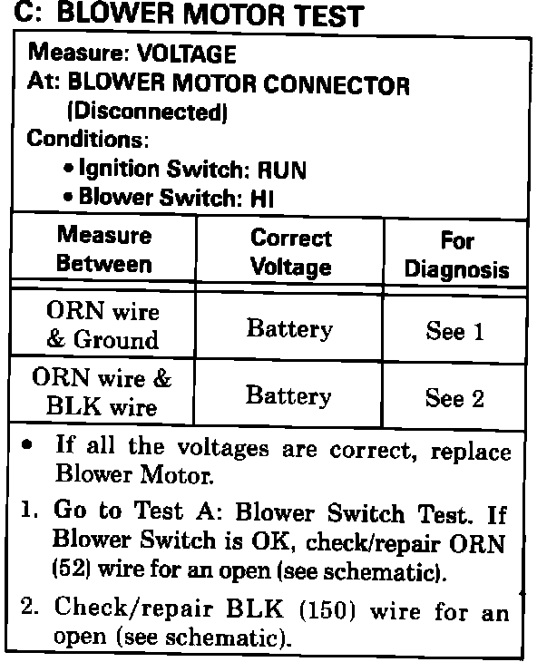 Test C: Blower Motor Test