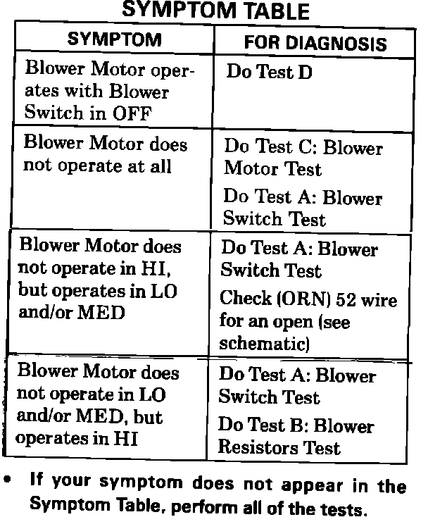 Symptom Table: