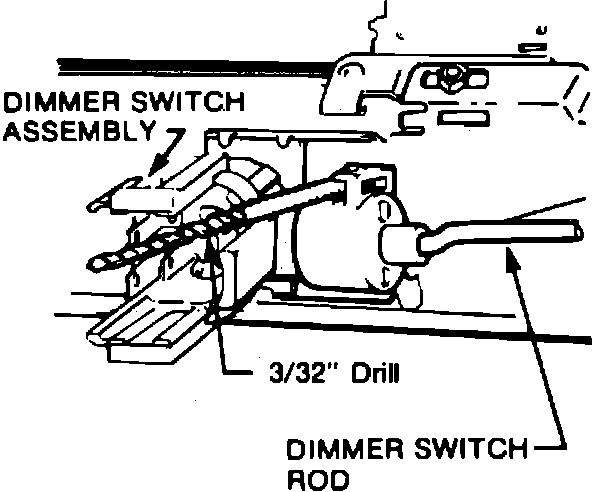 6. Remove dimmer switch retaining screw(s) and the switch. Tape actuator rod to column and separate switch from rod.