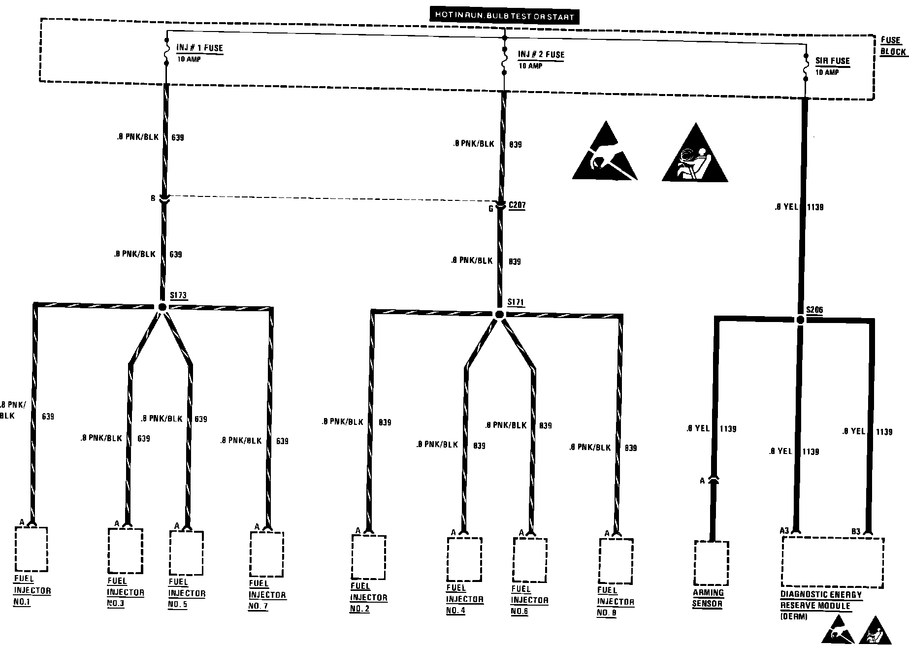 Injector #1, Injector #2, SIR Fuse: