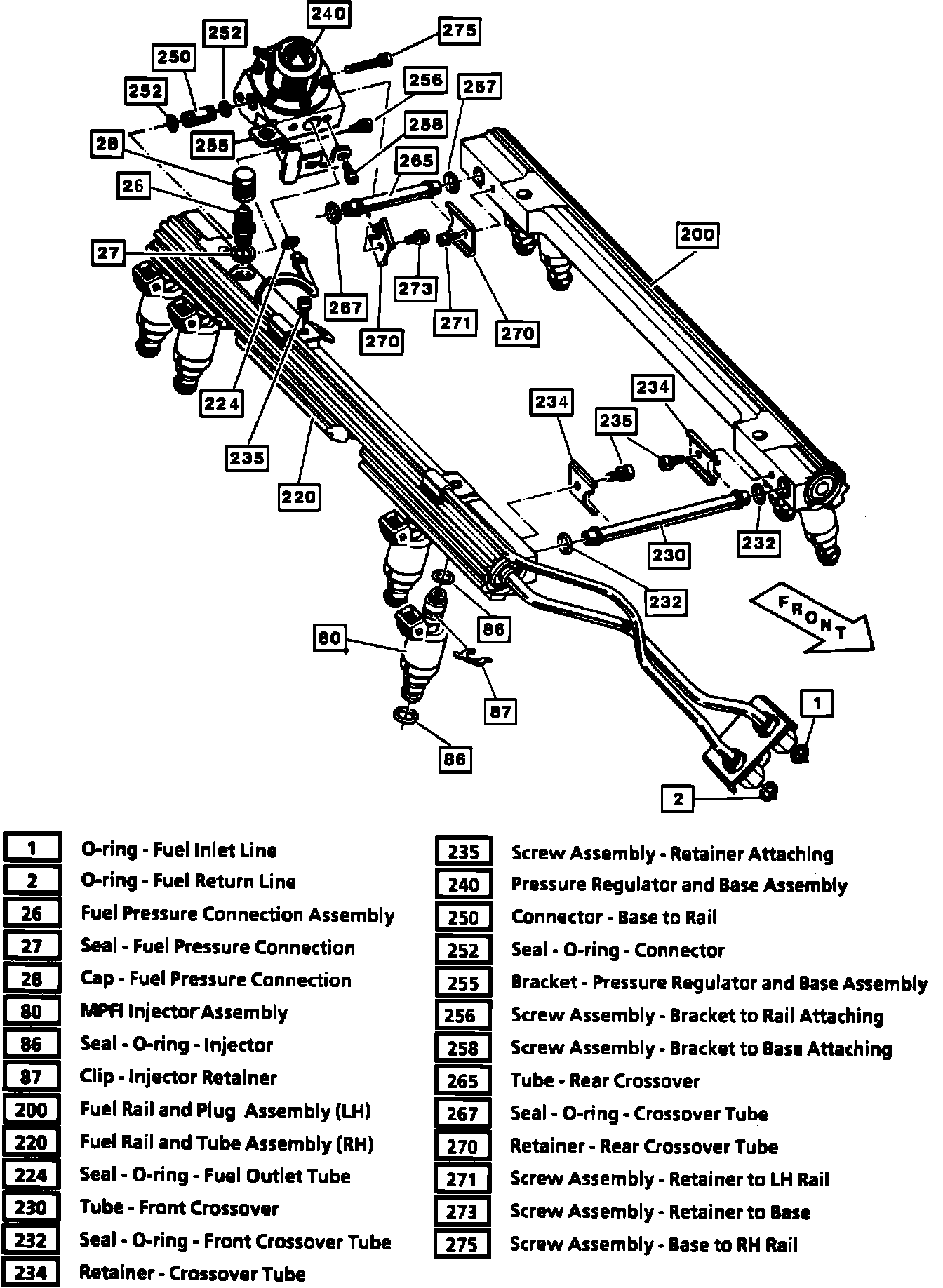 ^ Separate the regulator base from the fuel rail, then disconnect it from the fuel outlet tube.