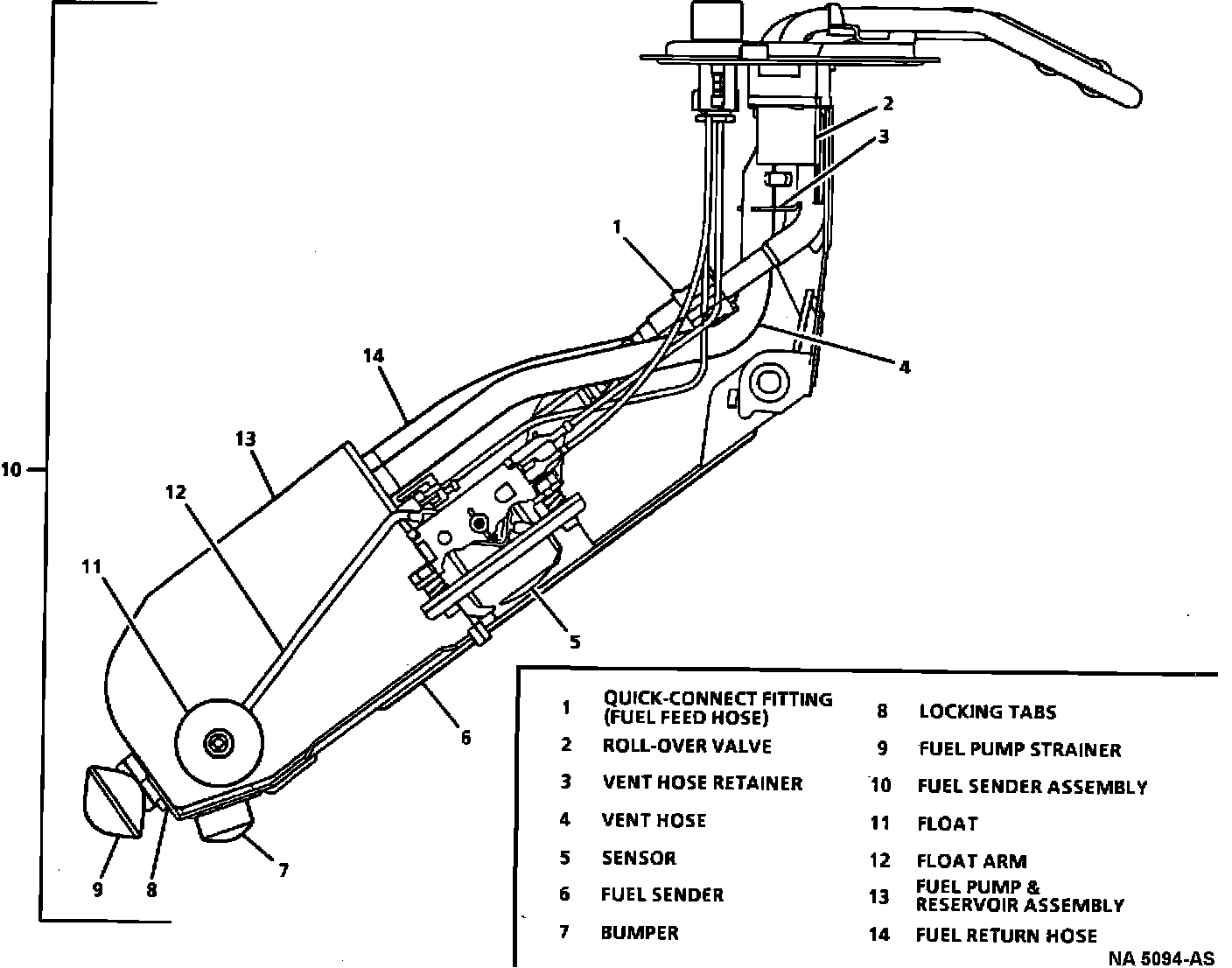 Fuel is supplied to the system from a high pressure roller vane pump mounted inside the reservoir. The fuel pump delivers more fuel than the engine can consume even at wide open throttle/full load. Excess fuel flows through the pressure regulator and back to the tank via the return line. The constant flow of fuel means that the fuel system is always supplied with cool fuel, thereby preventing the formation of fuel vapor bubbles. The pressure of the fuel pump should be 41-47 psi.