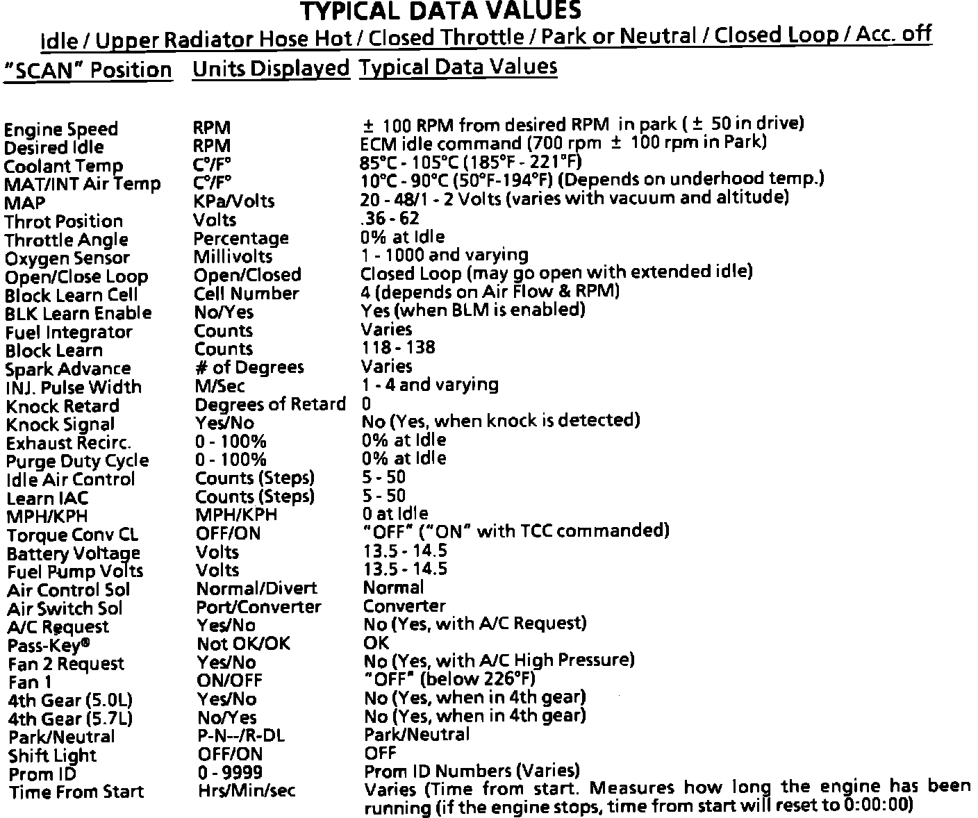 7. Comparison of actual control system data with the typical values is a quick check to determine if any parameter is not within limits. Keep in mind that a base engine problem (i.e. advanced cam timing) may substantially alter sensor values.