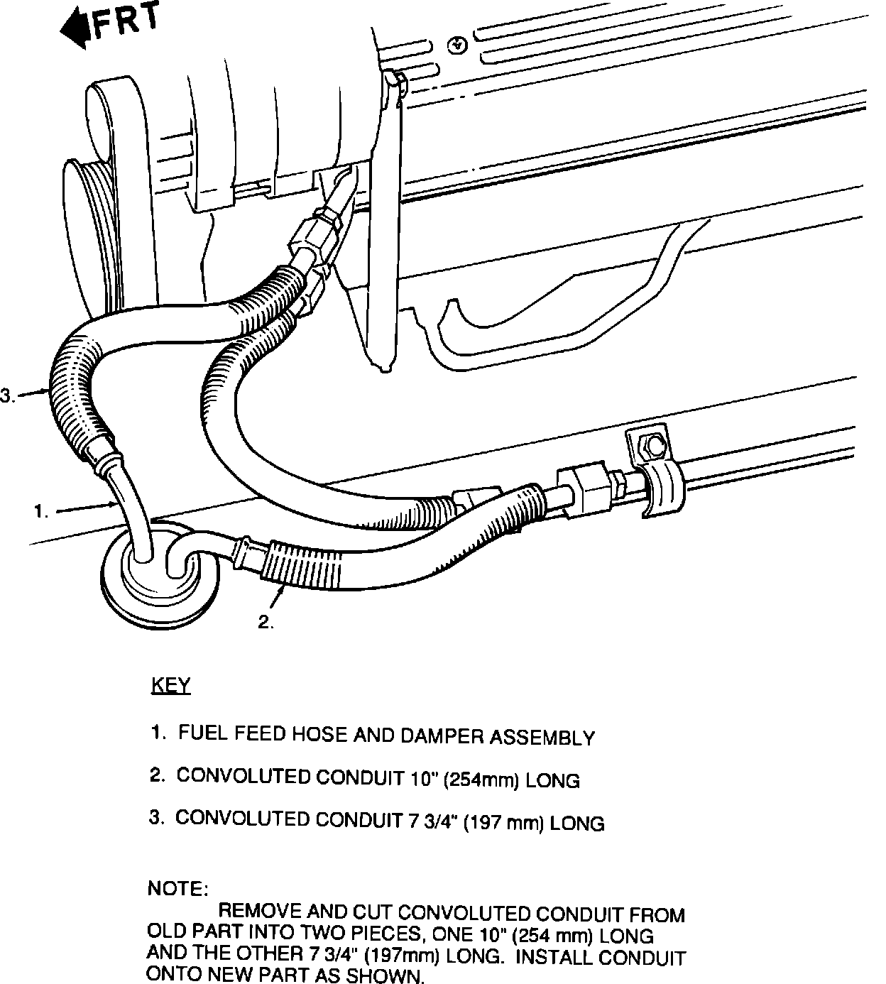 Replace existing underhood fuel feed hose with new hose and damper assembly, P/N 10238701, following applicable Service Manual procedures, Section 6C, Engine Fuel and illustration.