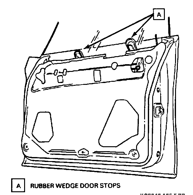 ^ Hold the window in place by inserting rubber wedge door stops at the front and the rear of the window between the window and the door inner panel.