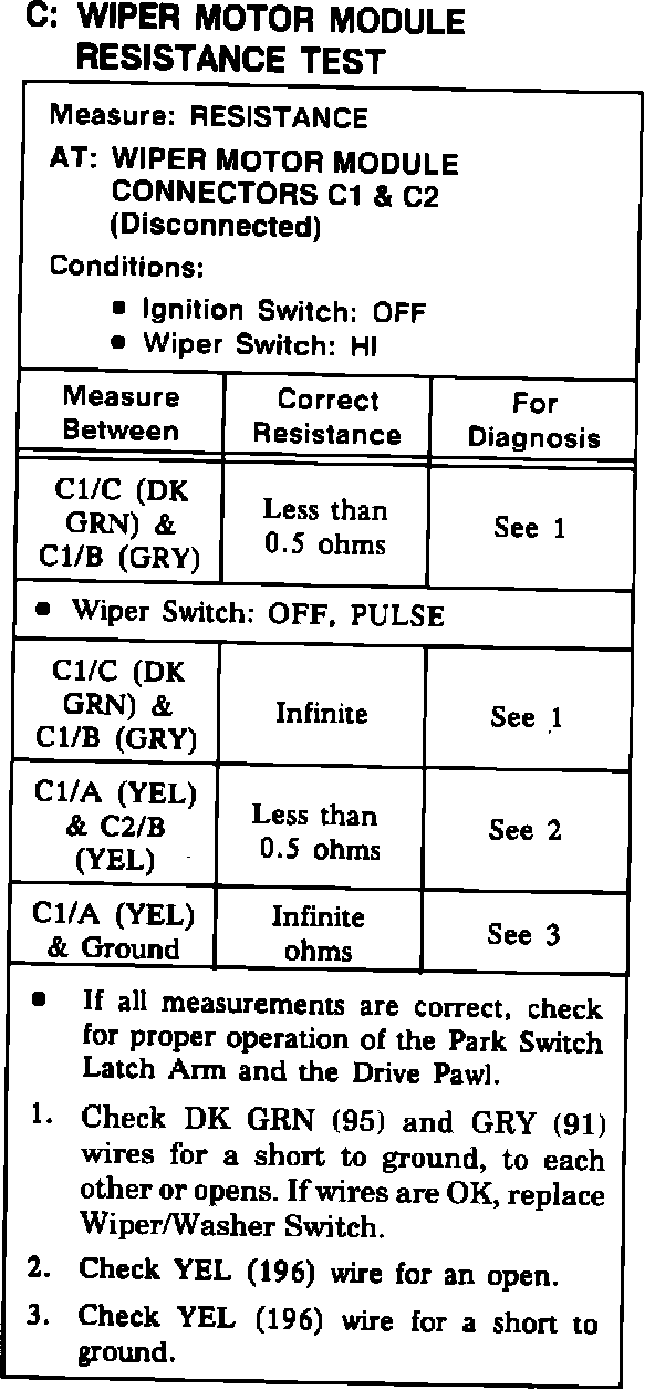 Test C: Wiper Motor Assembly Resistance Test