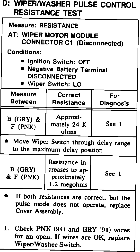 Test D: Wiper/Washer Pulse Control Resistance Test
