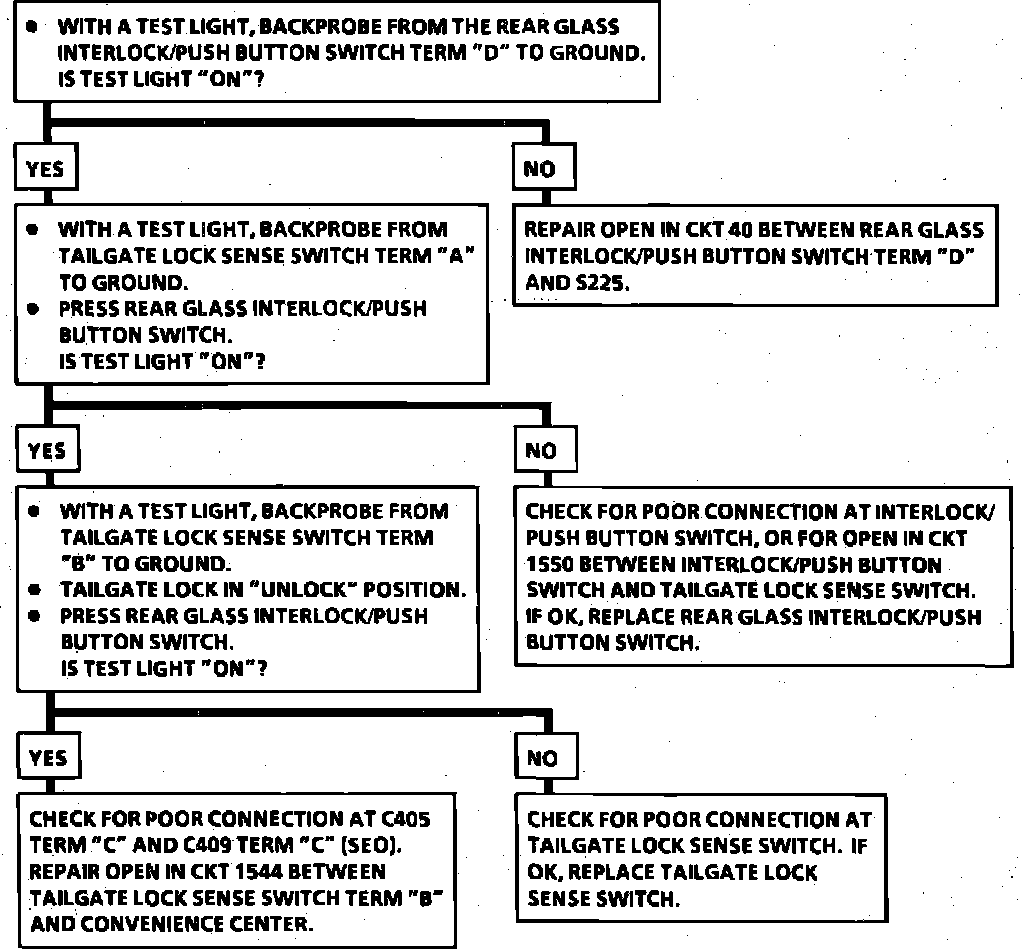 Rear Glass Release Inoperative From The Rear Glass Interlock/Push-button Switch Only: