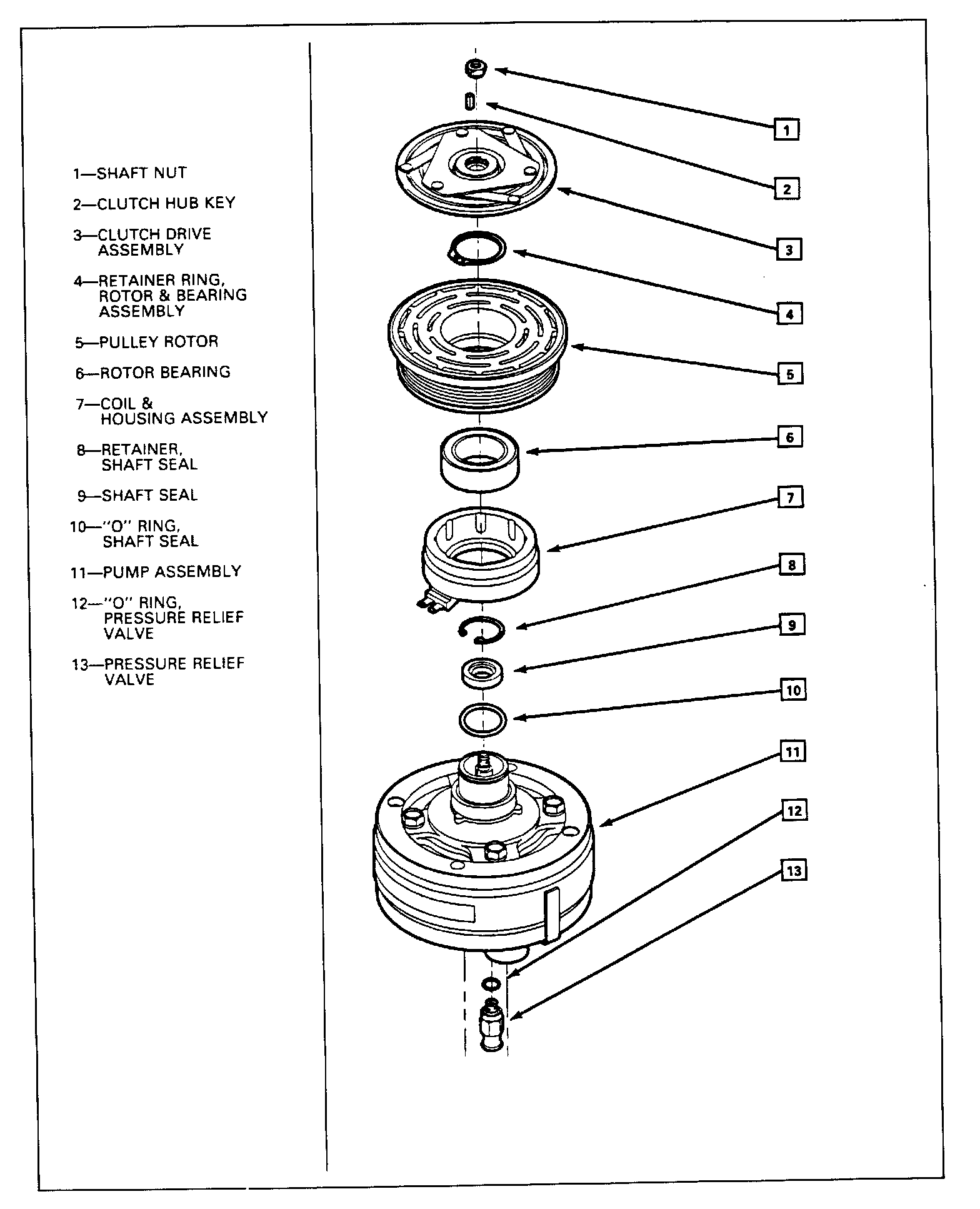 When replacing the shaft seal assembly or pressure relief valve (Fig. 2), even if the compressor remains on the vehicle during the operation, it will be necessary to recover refrigerant. Other than clutch repair procedures, the same holds true for any disassembly of the compressor.