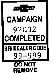 Each vehicle corrected in accordance with the instructions outlined in this Product Campaign Bulletin will require a "Campaign Identification Label." Each label provides a space to include the campaign number and the five (5) digit dealer code of the dealer performing the campaign service. This information may be inserted with a typewriter or a ball point pen.Each "Campaign Identification Label" is to be located on the radiator core support in an area which will be visible when the vehicle is brought in for periodic servicing by the owner. Additional "Campaign Identification Labels" can be obtained from DAC.
