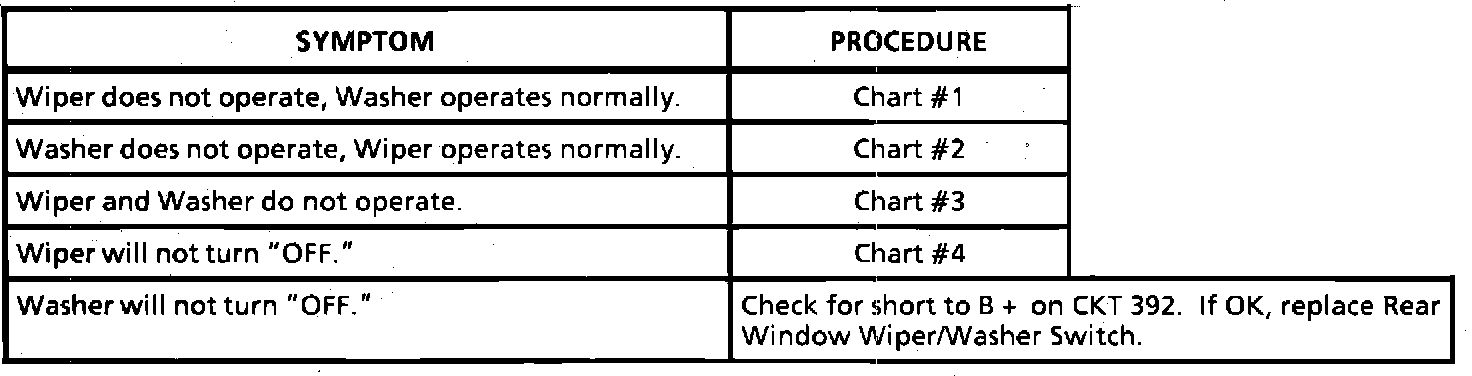 Rear Wiper/Washer Symptom Chart: