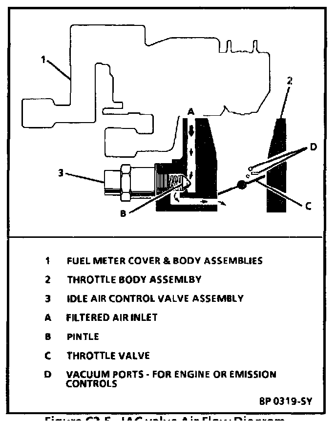 - "Controlled" idle speed is programmed into the ECM, which determines the correct IAC valve pintle position to maintain the desired idle speed for all engine operating conditions and loads.