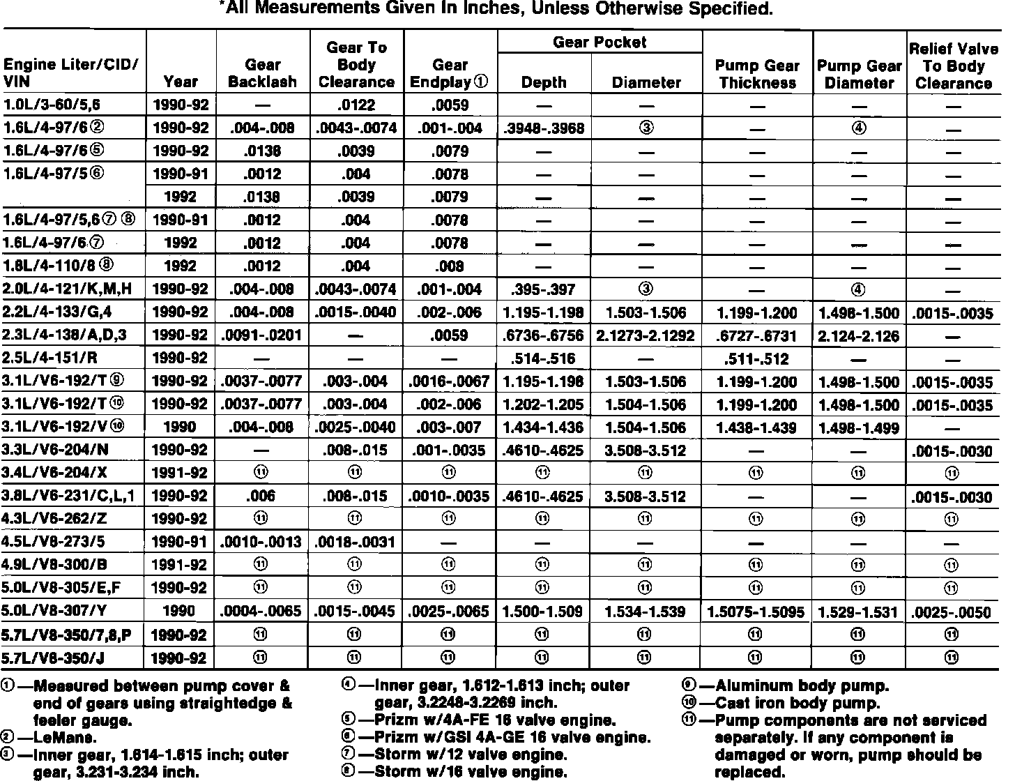 Oil Pump Specifications: