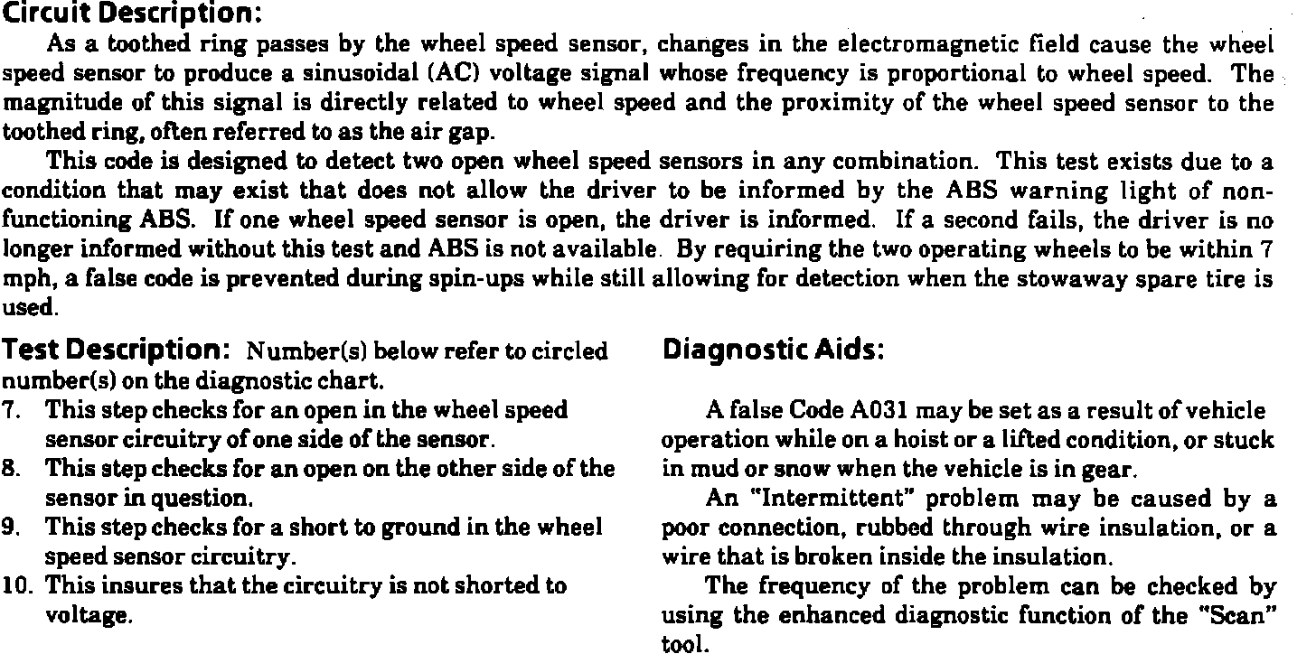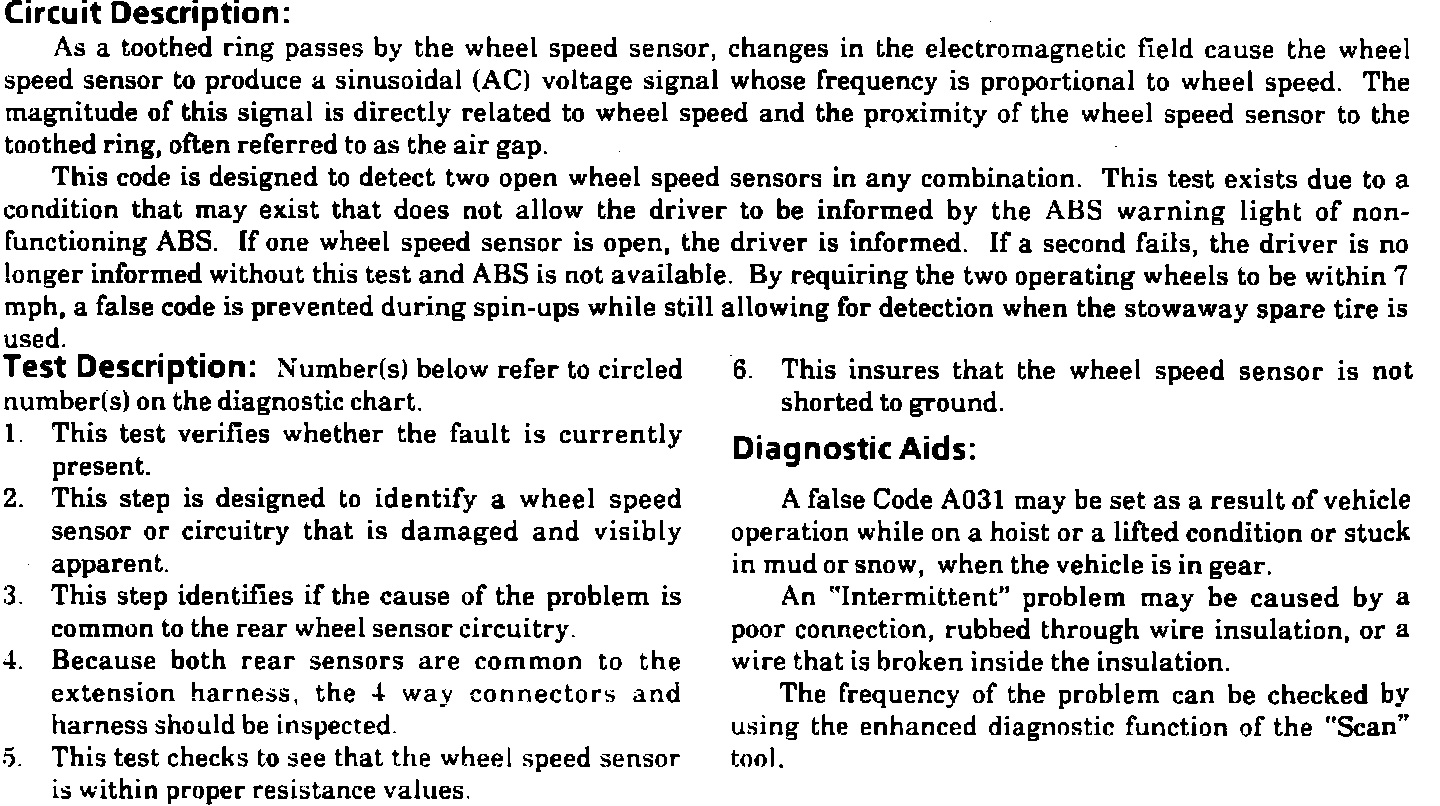 Fig. 31 Code A031, Two Wheel Speed Sensors Open (Part 2 Of 4). Less Tubular: