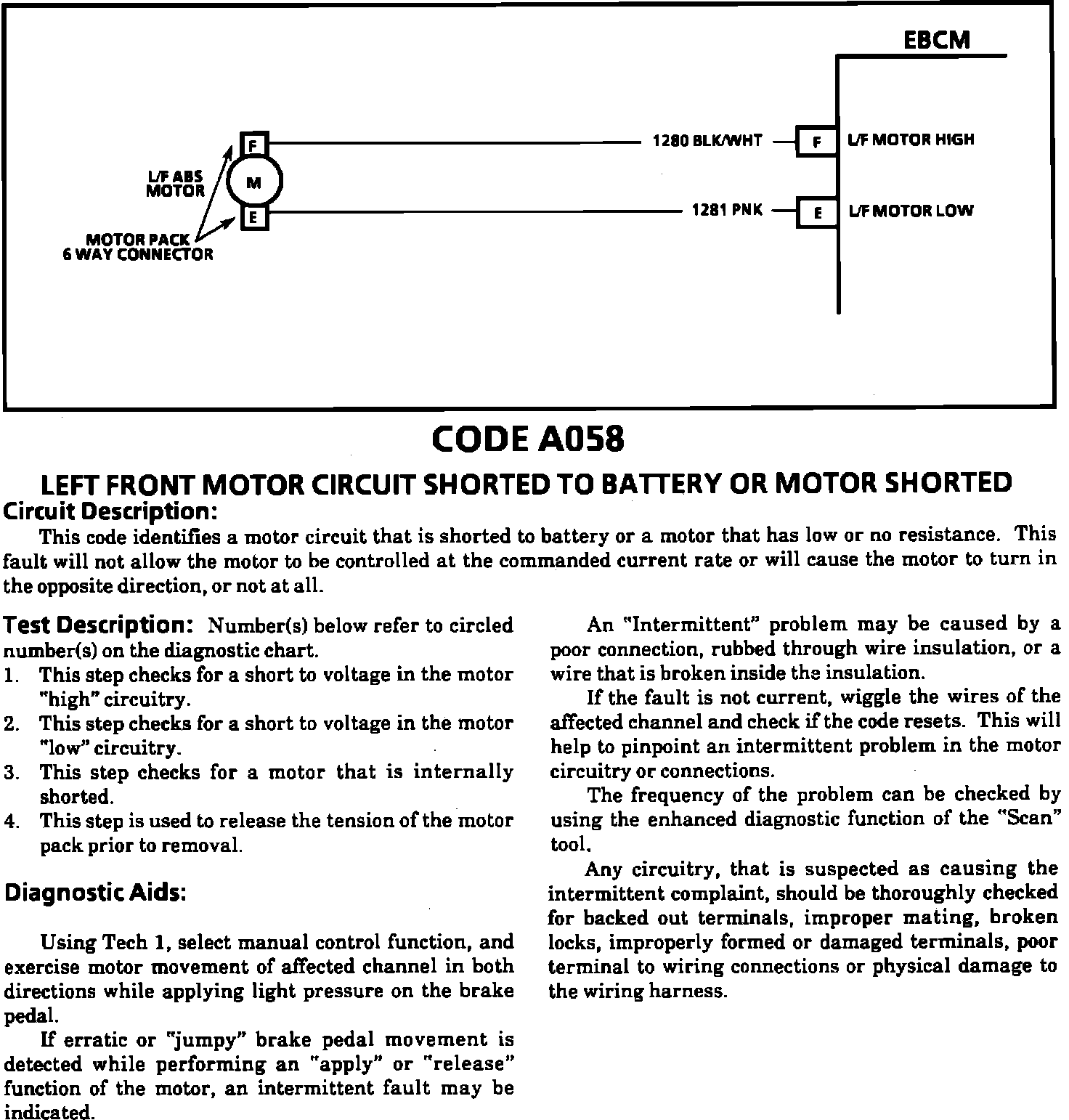 Fig. 56 Code A058, Left Front Motor Circuit Shorted To Battery: