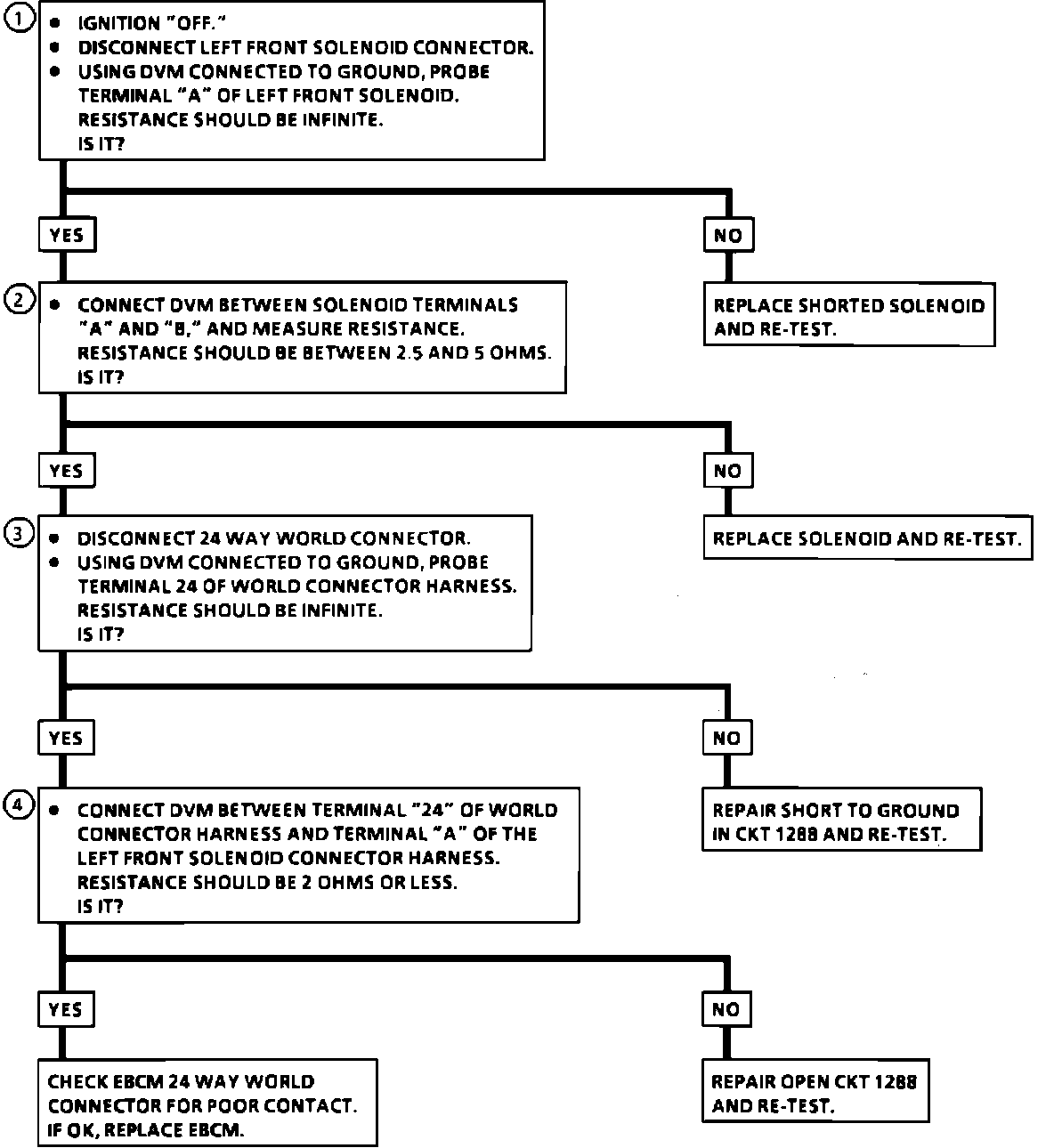Fig. 68 Code A077, Left Front Solenoid Shorted To Ground Or Driver Open: