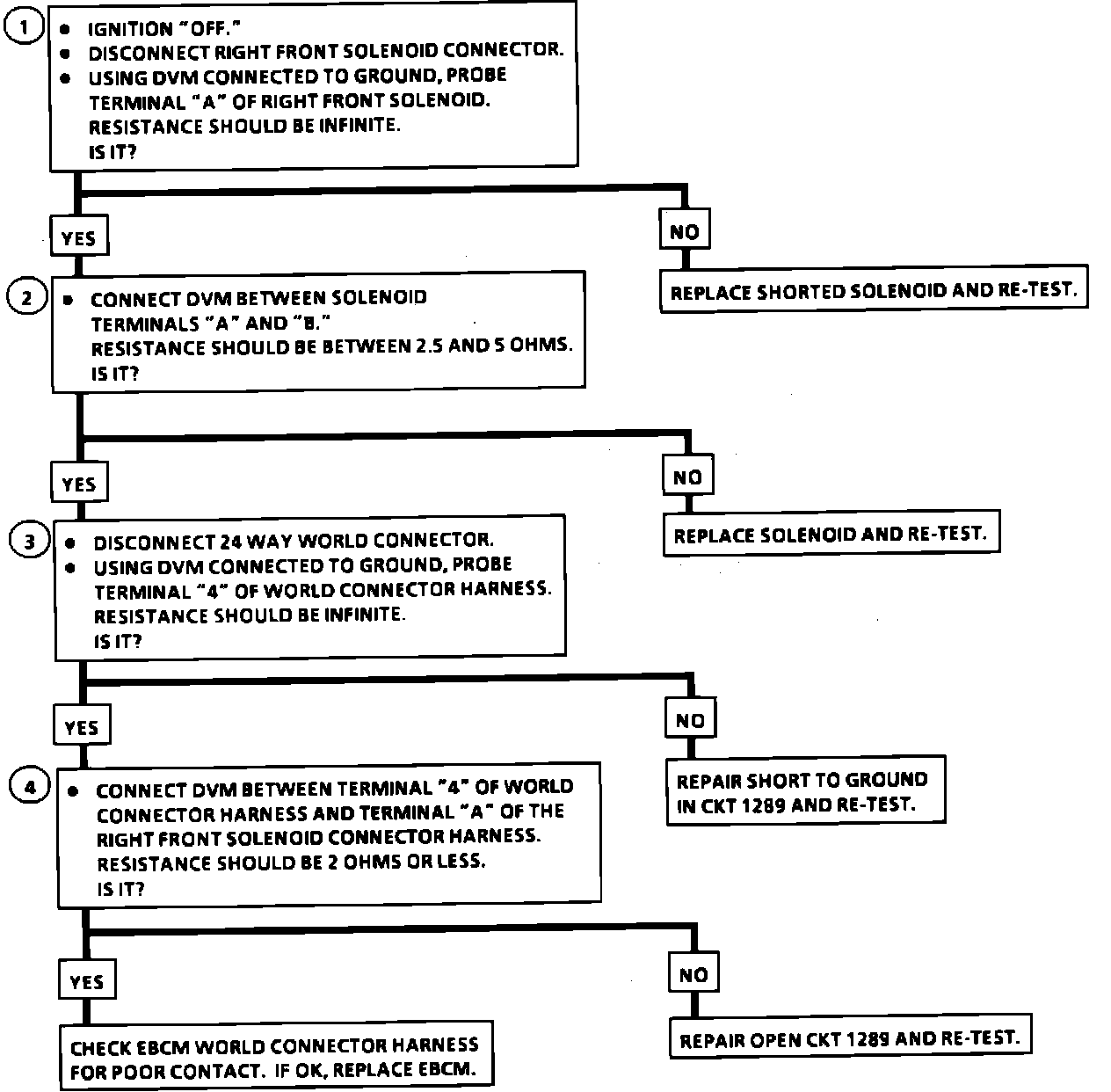 Fig. 70 Code A081, Right Front Solenoid Shorted To Ground Or Driver Open: