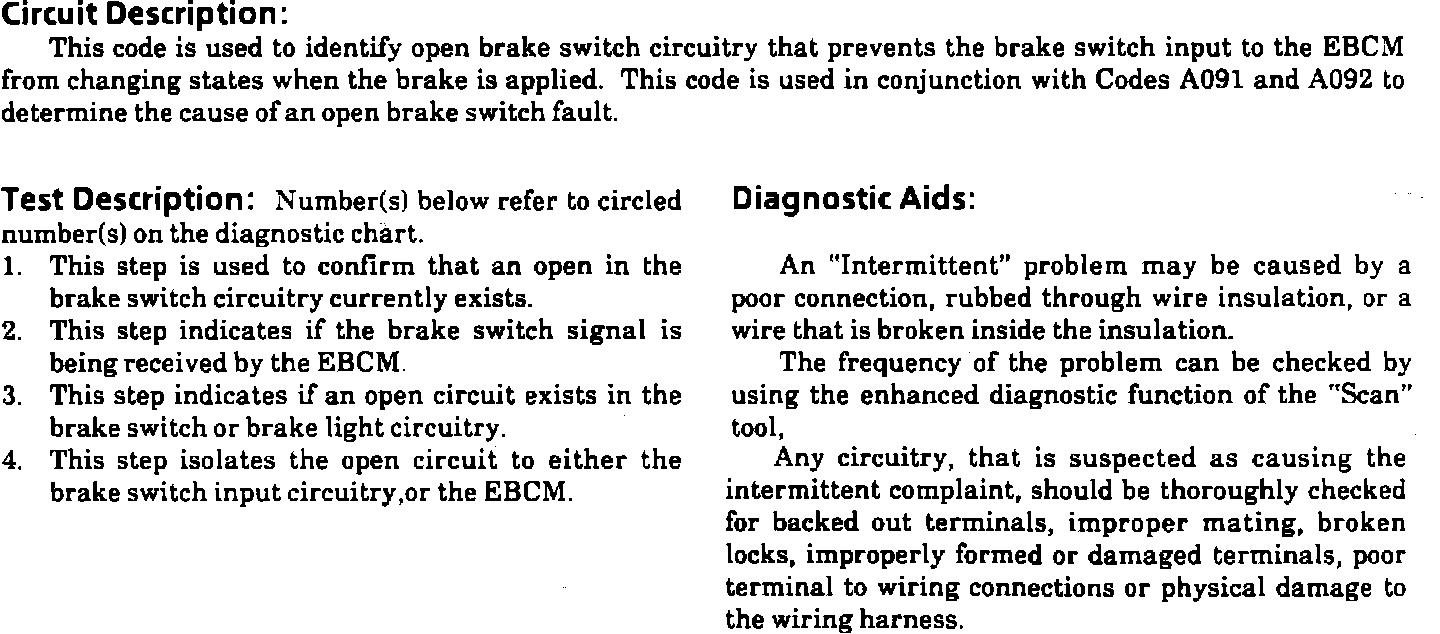 Fig. 79 Code A095, Brake Switch Circuit Open: