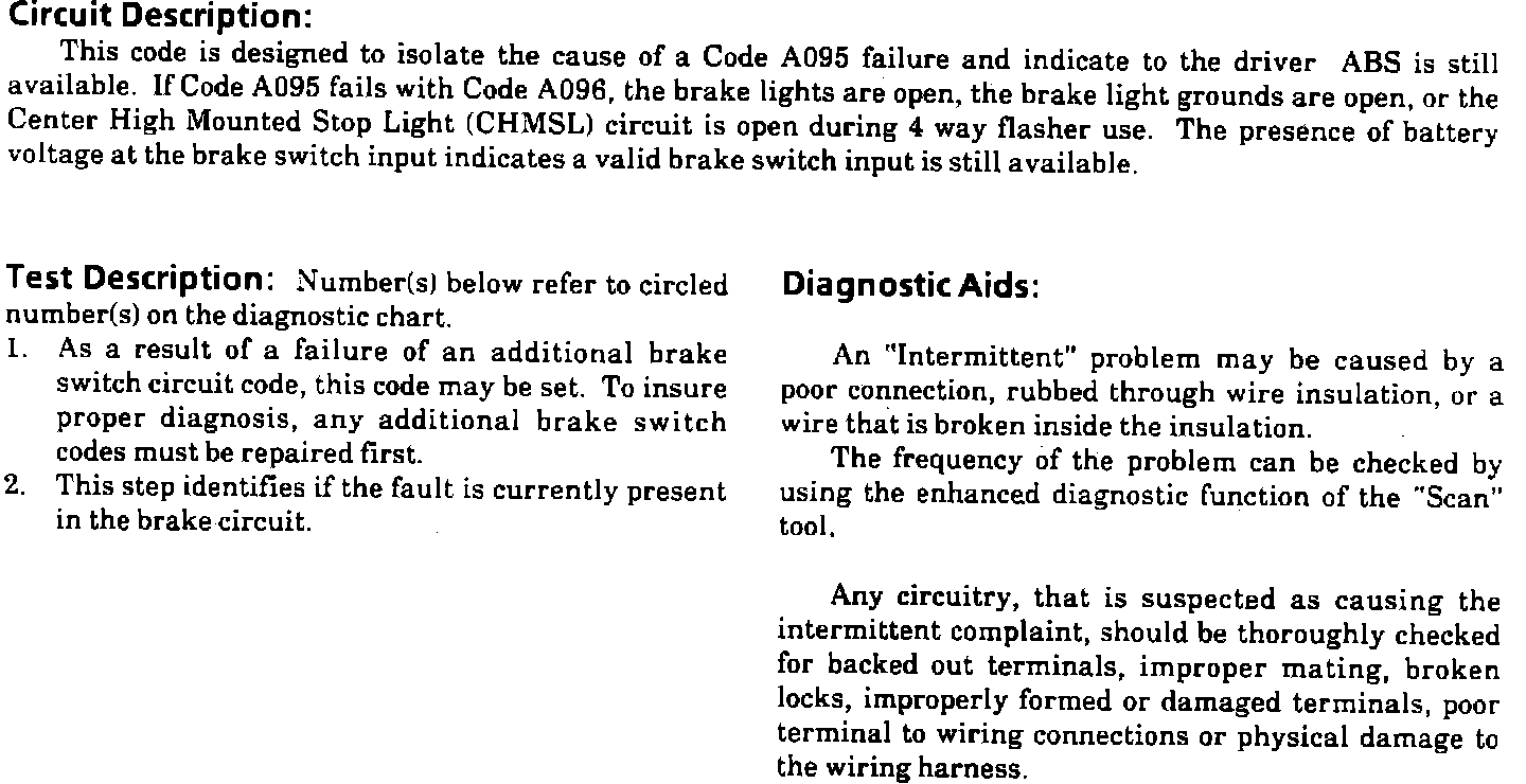 Fig. 80 Code A096, Brake Lights Open, Brake Light Grounds Open, CHMSL Open During 4-way Flasher Operation: