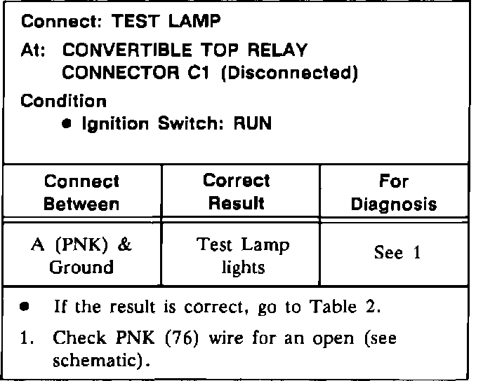 Test B: Convertible Top Relay Test (Table 1):