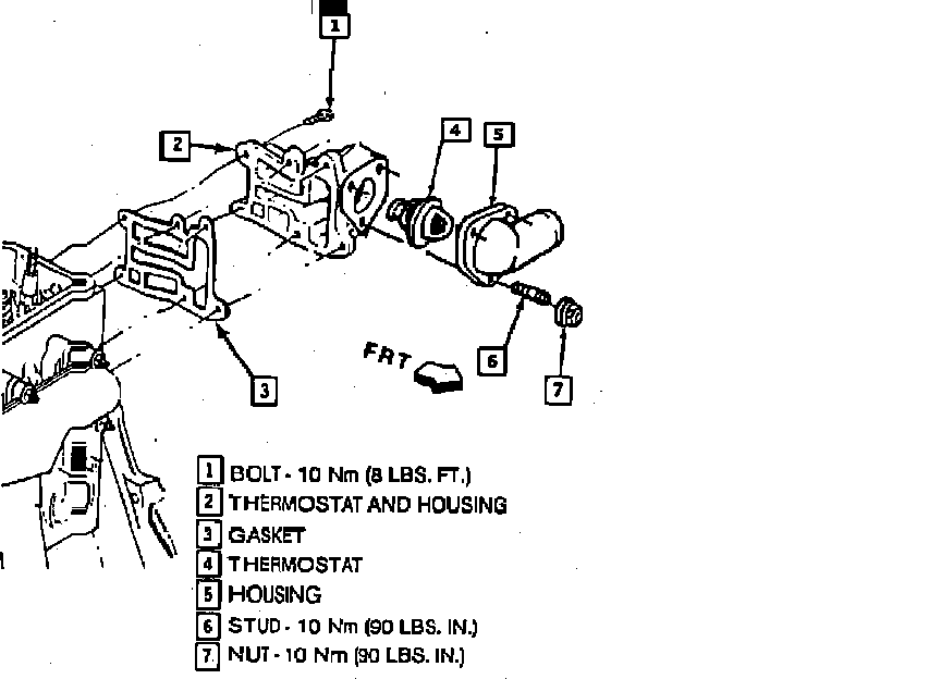 c. Torque thermostat housing retaining nuts to 89 inch lbs.
