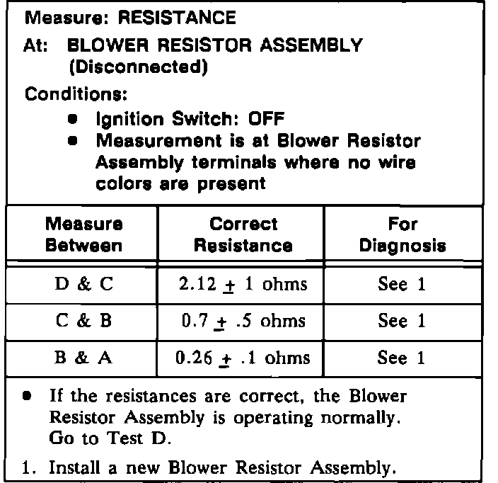 Test C: Blower Resistor Assembly Test: