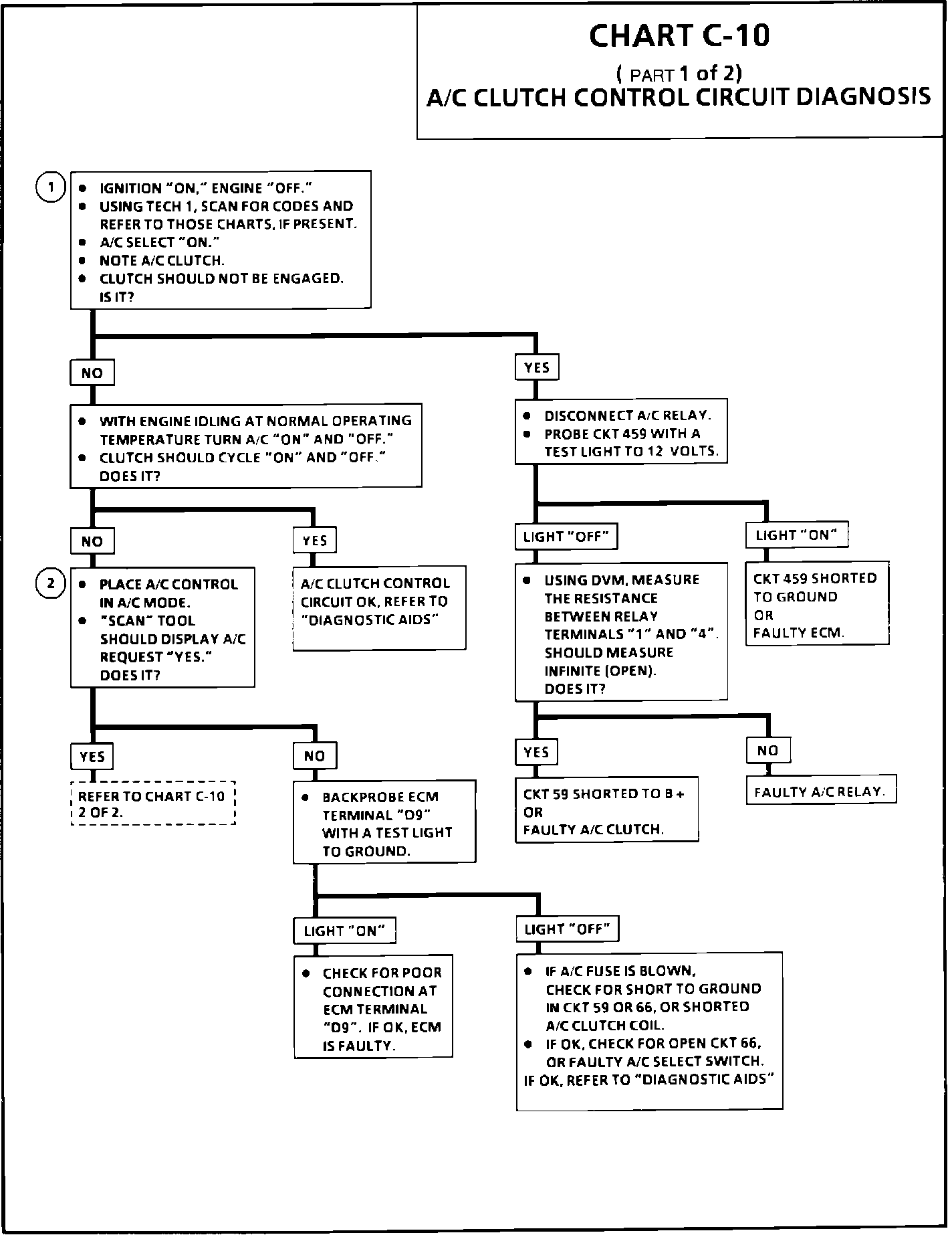 1. The ECM will only energize the A/C relay when the engine is running. This test will determine if the relay or CKT 459 is faulty.