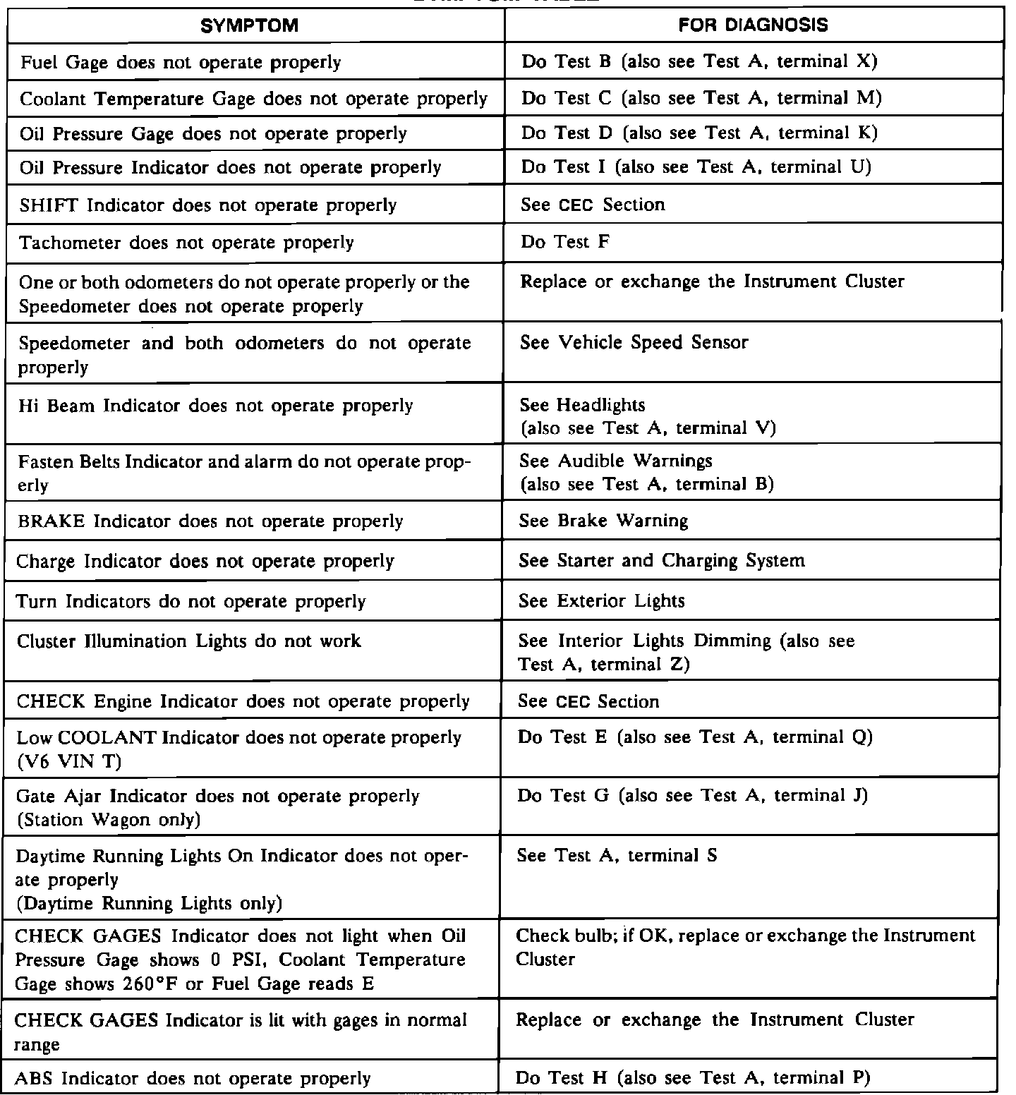 A Symptom Chart - Gauge Cluster