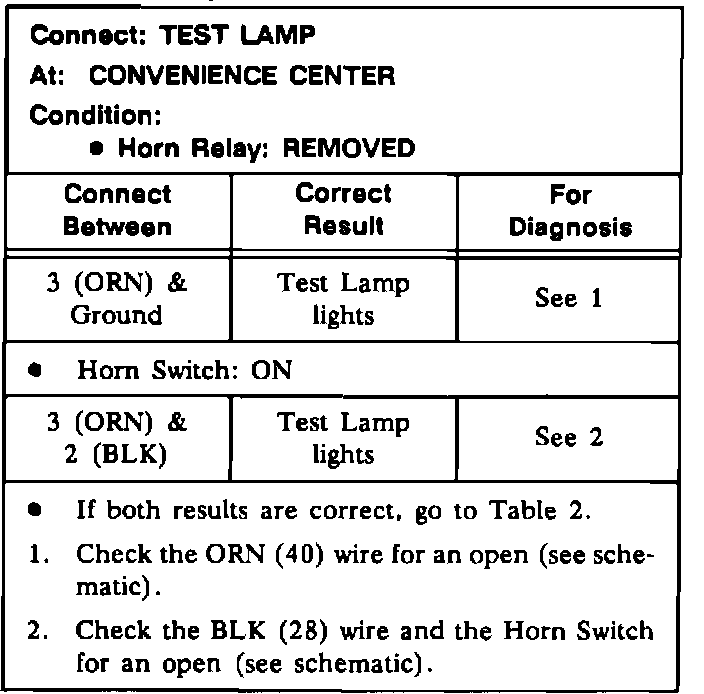 Horn Does Not Sound (Table 1):