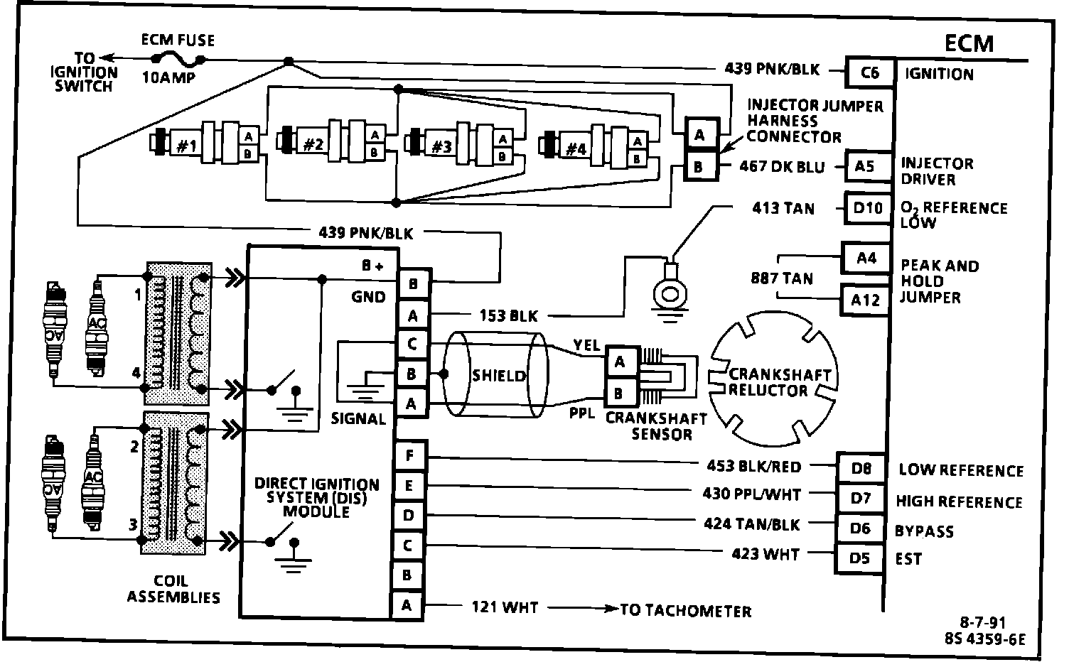 6. Damage to ECM injector driver may occur if any injector resistance measures less than 11.6 ohms (internal short to ignition CKT 439).