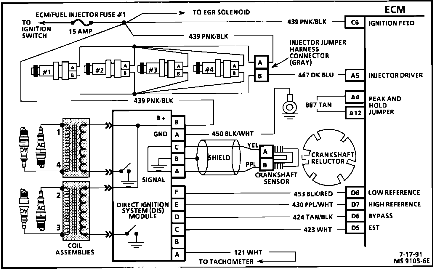 6. Damage to the ECM injector driver may occur if any injector resistance measures less than 11.6 ohms (internal short to ignition CKT 439).