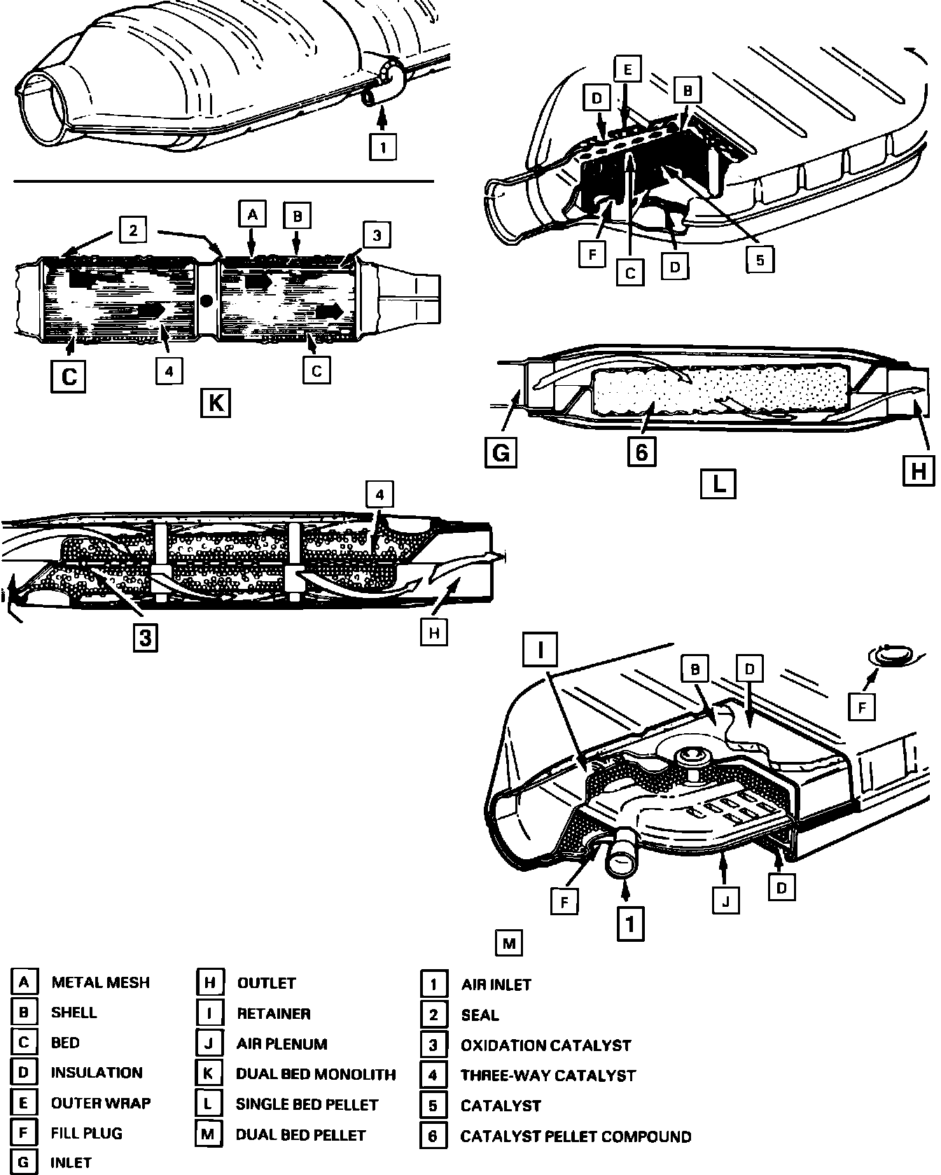 General Motors uses four different converter designs in conjunction with two types of catalysts. The four converter designs are: