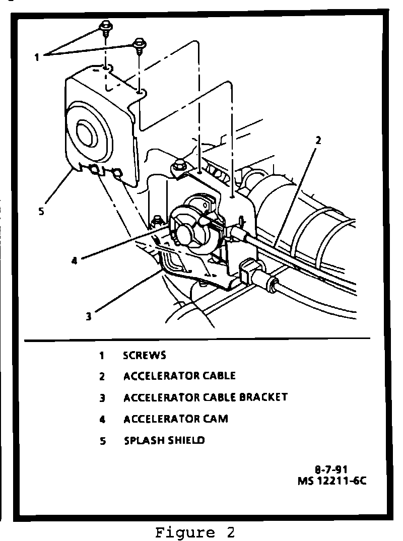 3. Accelerator cable splash shield from accelerator cable bracket (see Figure 2).