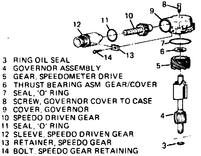 6. Remove speedometer drive gear thrust washer and gear, then the governor assembly.