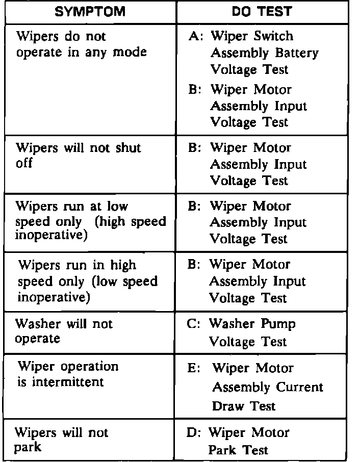 Wiper/Washer System Symptom Chart: