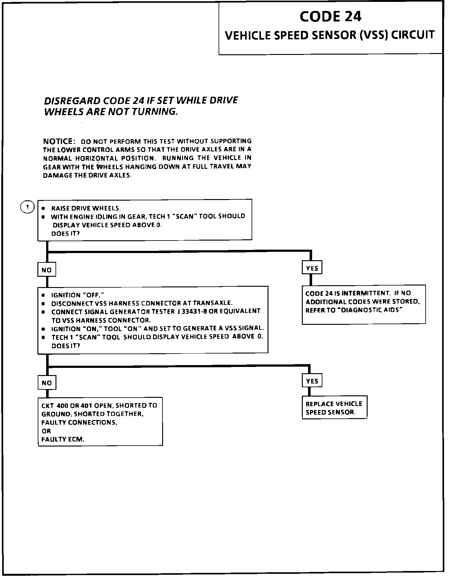 These conditions are met during a road load deceleration. Disregard Code 24 that sets when drive wheels are not turning.