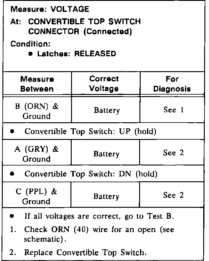 Test A: Convertible Top Switch Test: