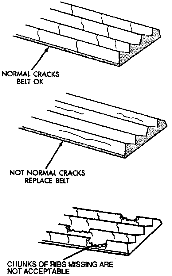 If chunks of belt material are missing between the cracks, the belt should be replaced.