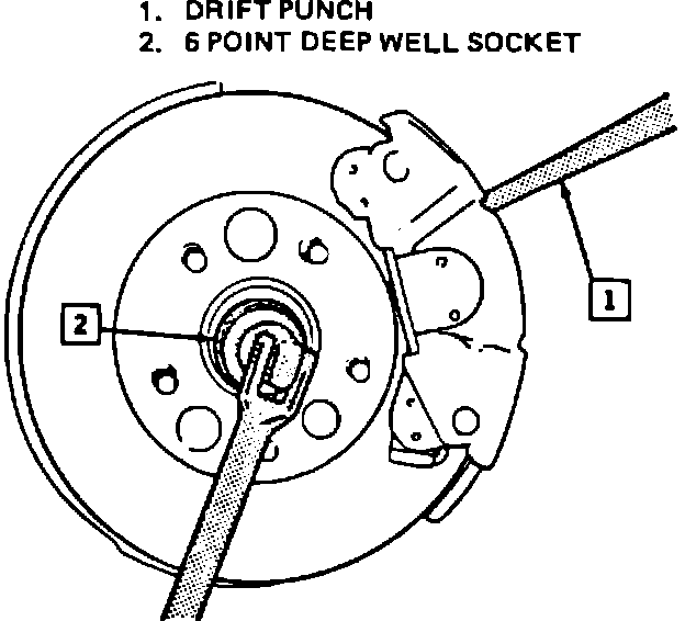 3. Insert a drift punch through the rotor, Fig. 3, then remove axle shaft nut and washer.