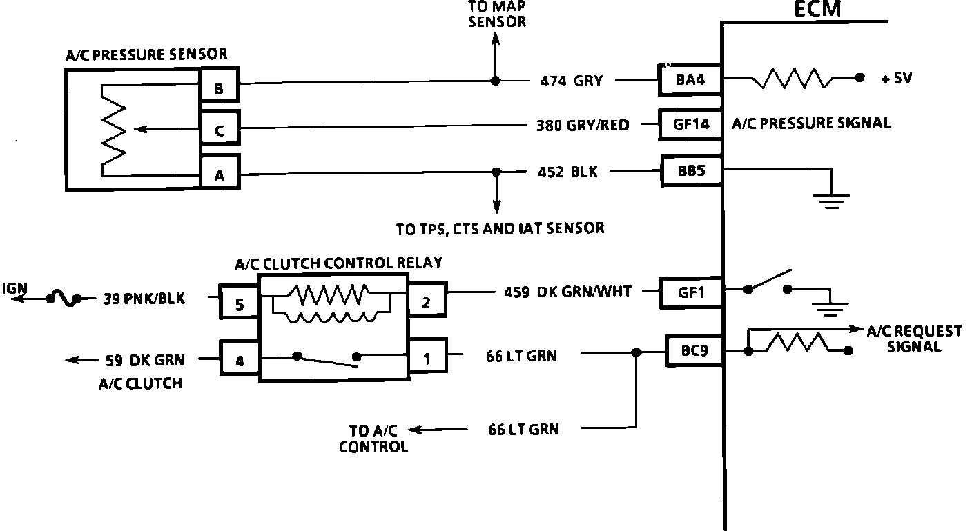 A/C On Signal, Pressure Sensor And Clutch Control Relay: