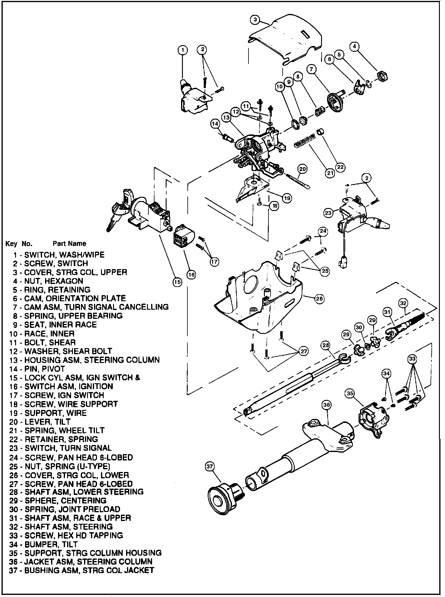 5. Steering column jacket bushing (37) from lower end of jacket assembly (36) if not removed previously.