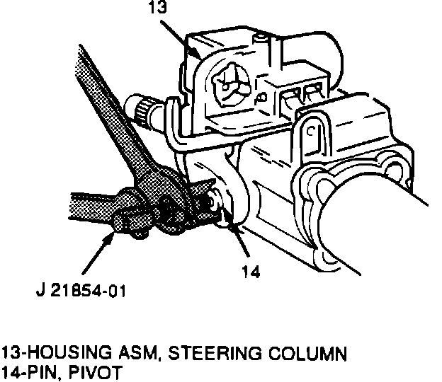 9. Pull tilt lever bracket on column housing assembly (13) and tilt column all the way up.