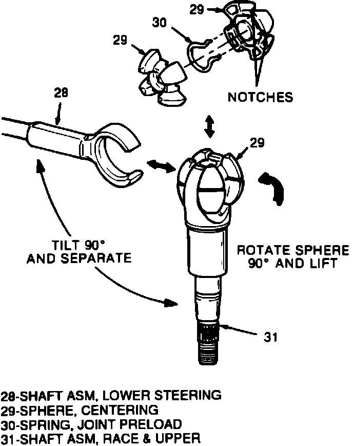 1. Position upper shaft (31) 90~ to lower shaft (28) and separate. (See Figure 7)