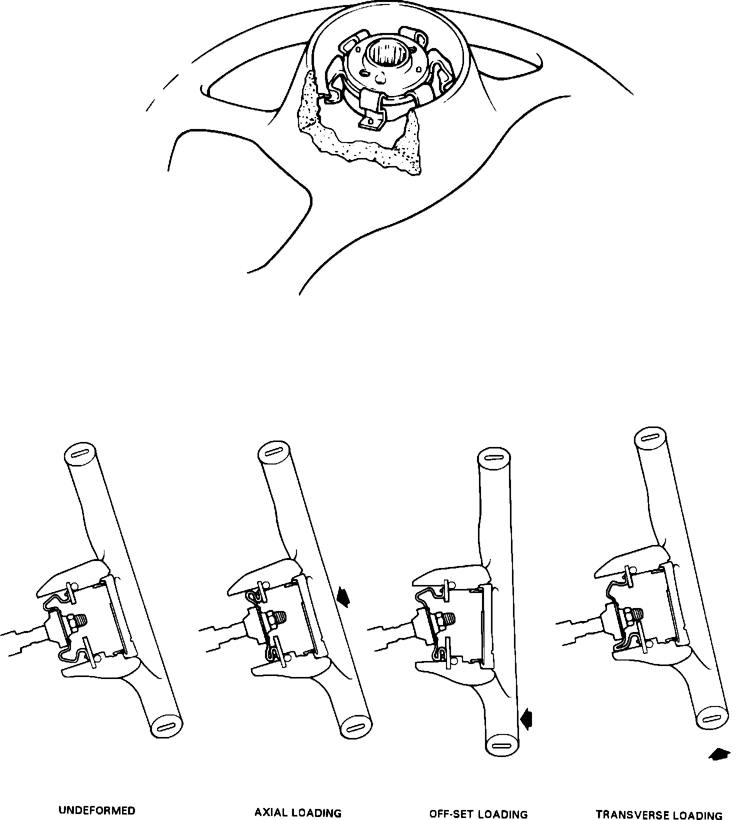 Concerned with injuries related to driver involvement with the steering system during accidents, General Motors developed the energy absorbing steering column in the mid 1960s. It was designed to collapse in a controlled fashion to help dissipate the energy of the driver during the rapid deceleration of a collision. In a frontal impact, with a properly adjusted safety belt, the steering wheel is designed to distribute the impact load primarily through the driver's chest and shoulders.