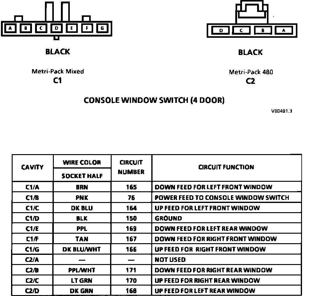 Console Window Switch Connector (4 Door):