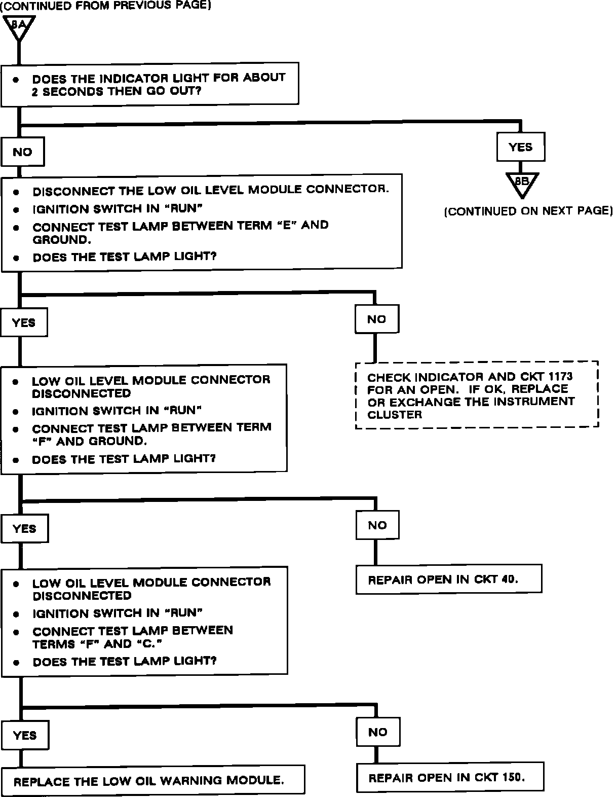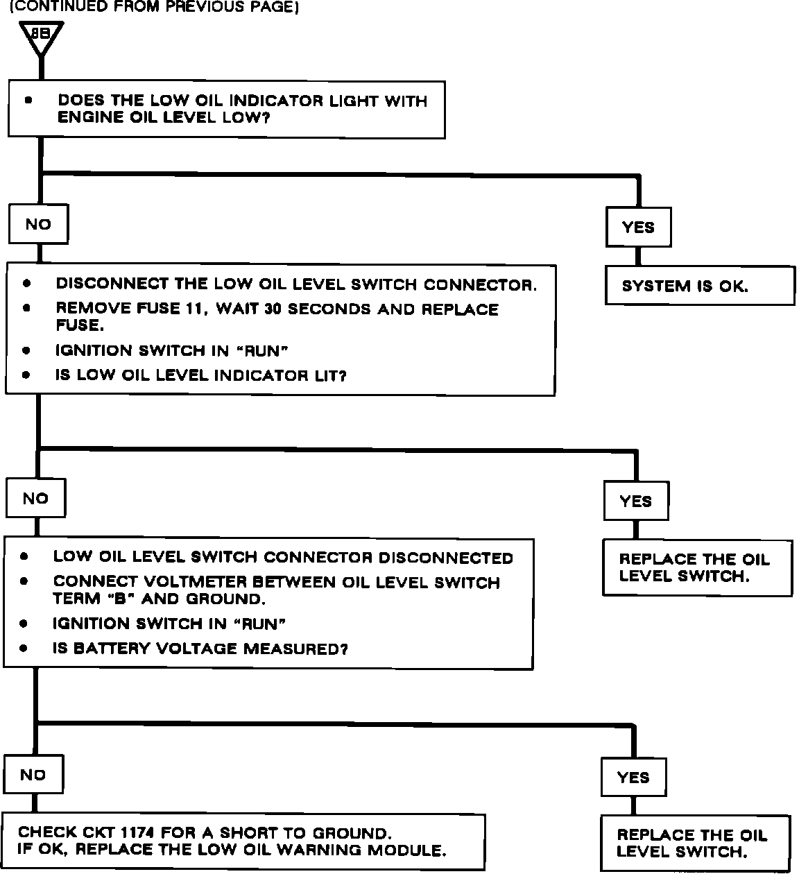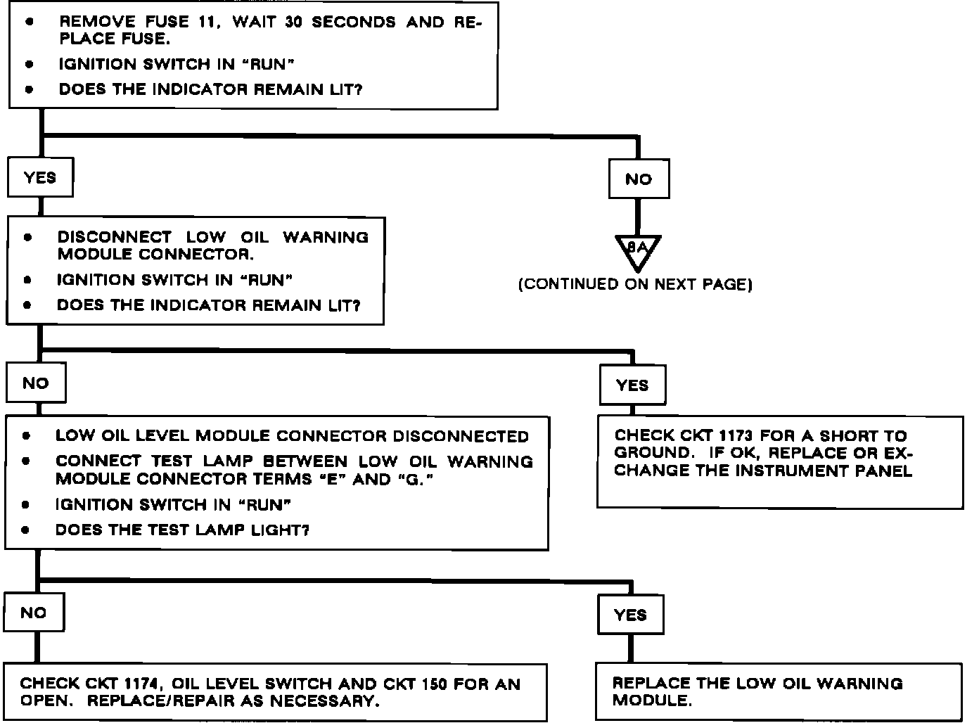 Chart #8 - Low Oil Level Indicator Does Not Operate Properly: